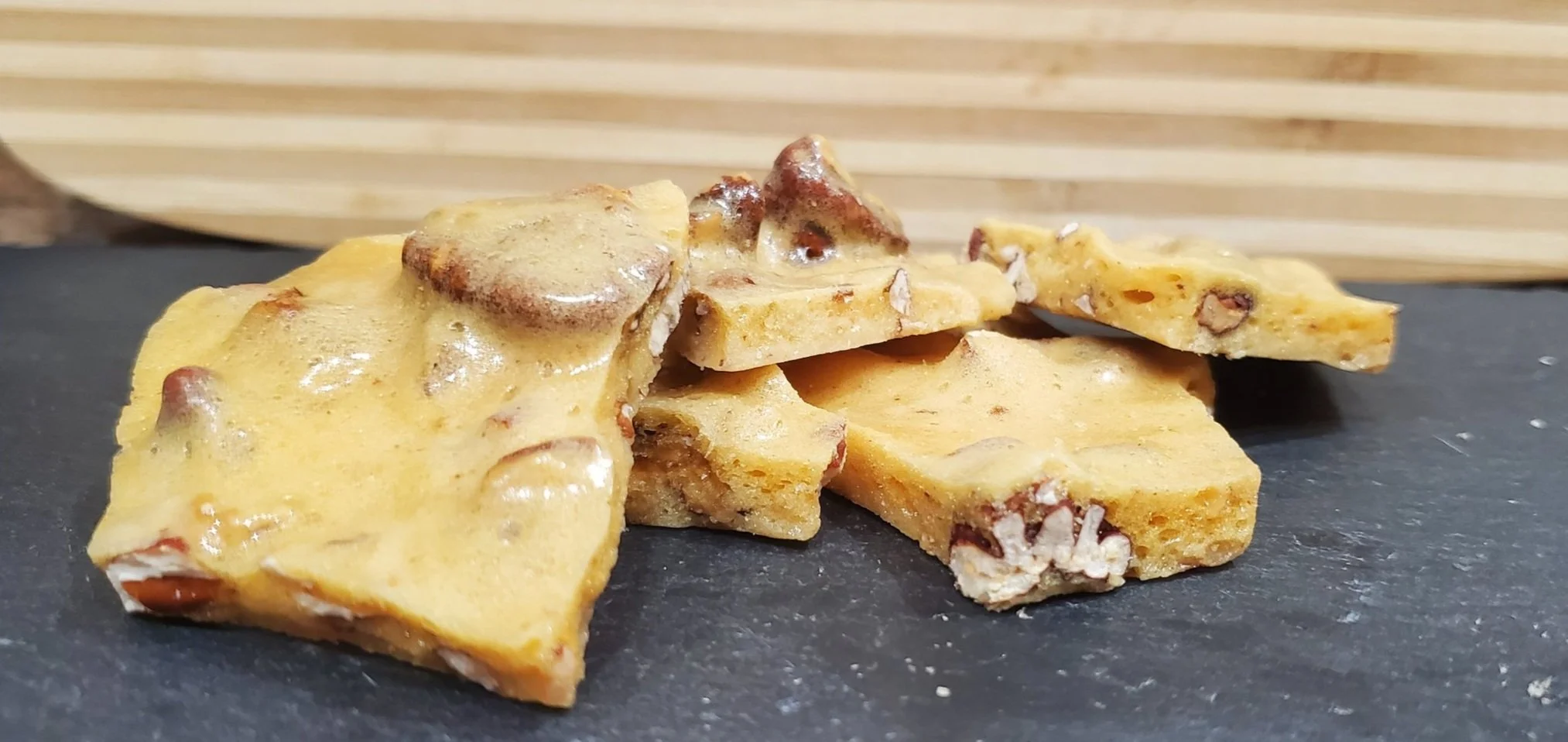 According to one account, peanut brittle was a Celtic dessert. The Celts covered peanuts in sugar and baked them, and this eventually evolved into a caramel bark.